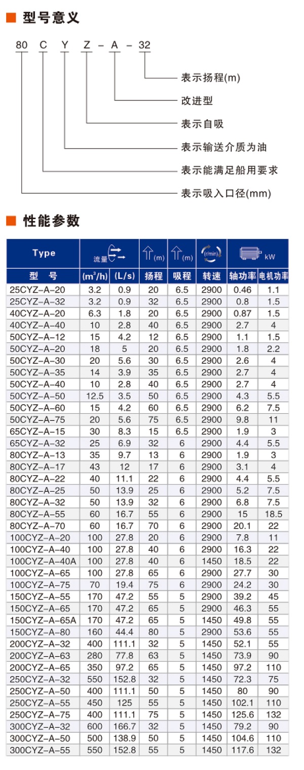 CYZ-A型自吸式離心油泵規(guī)格、型號(hào)、用途、產(chǎn)品圖片以及技術(shù)參數(shù)介紹:
